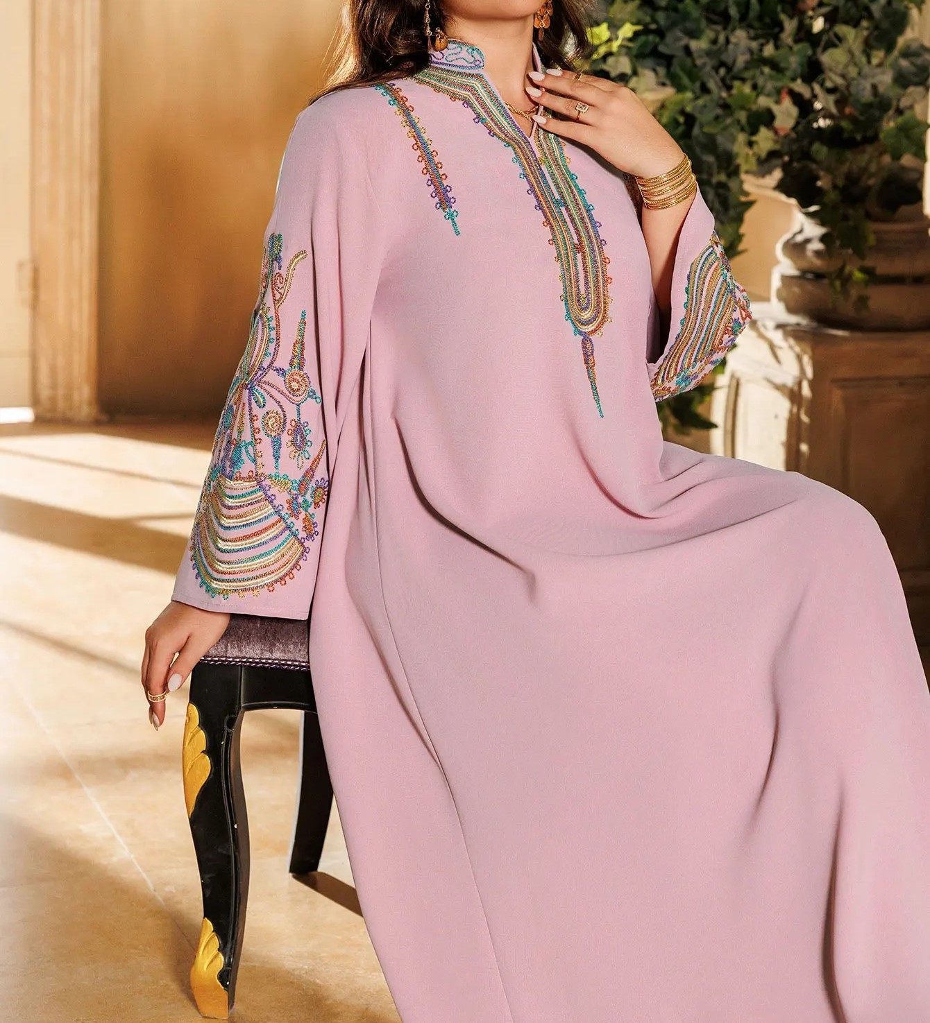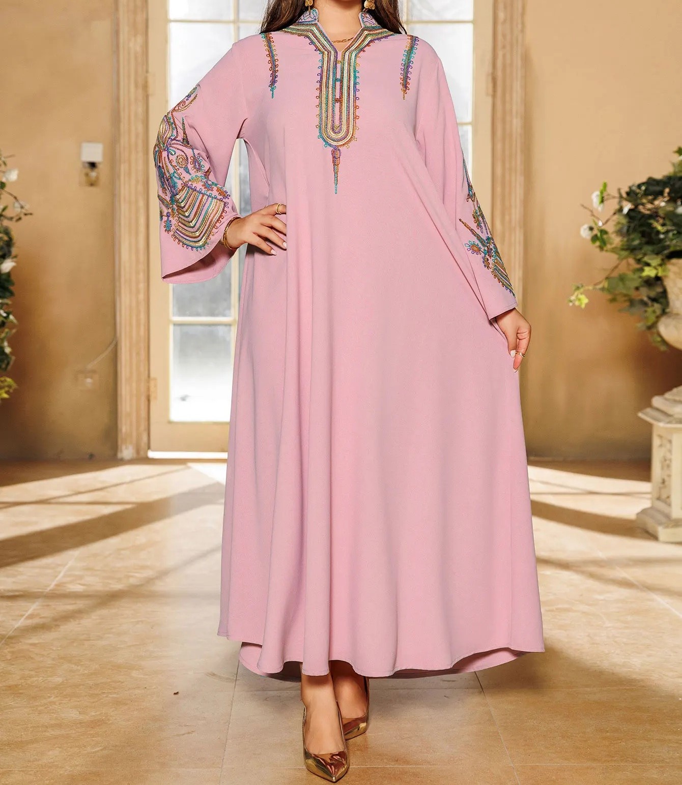 Découvrez la beauté de cette djellaba rose pour femme et la douceur de son tissu !